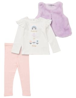 3 Teile, Floral, Rüschen, weiß, rosa