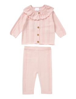 2 Teile, Lochmuster, Rüschen, rosa
